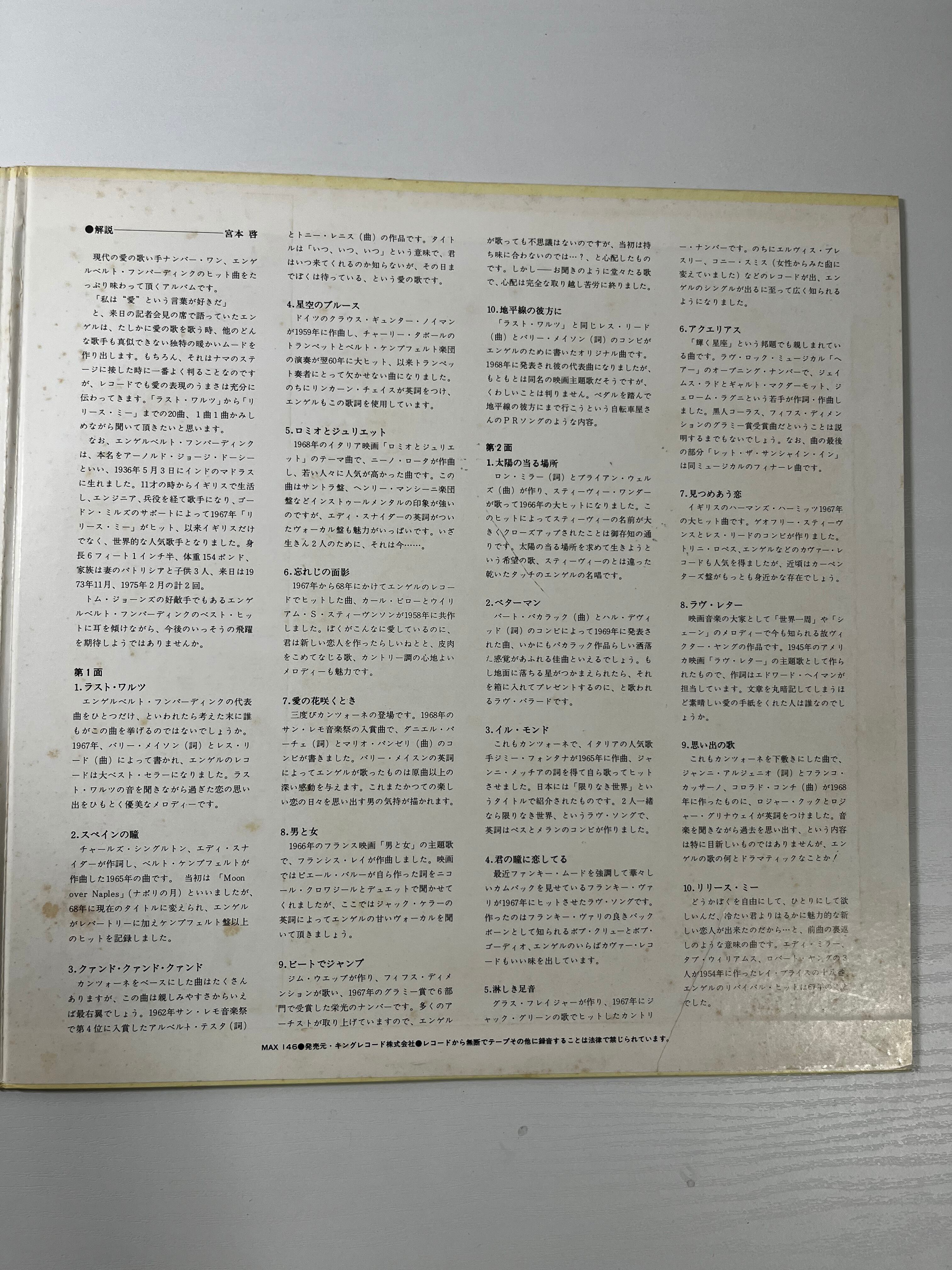 Engelbert Humperdinck Best 20 / エンゲルベルト・フンパーディンク ベスト20