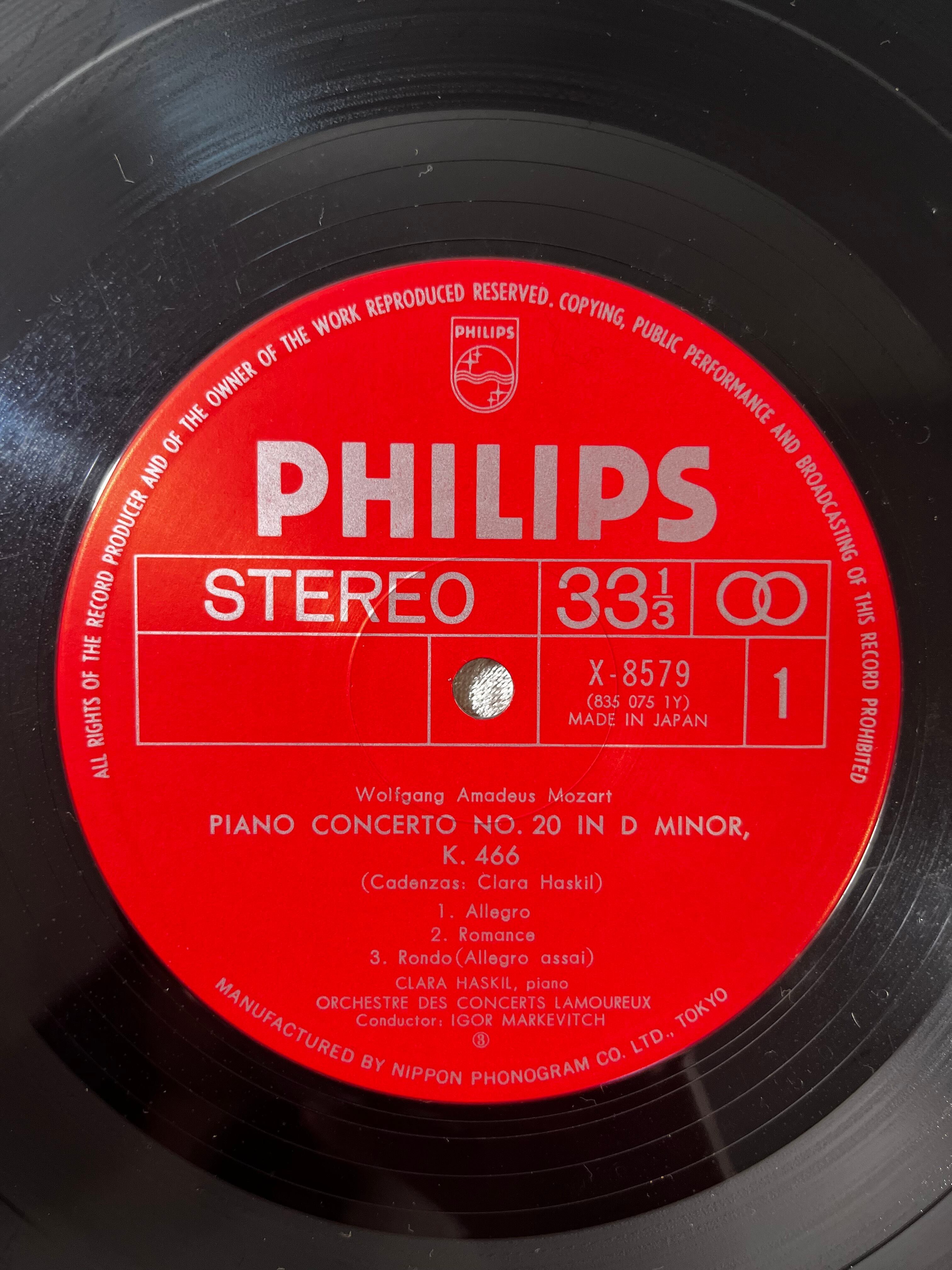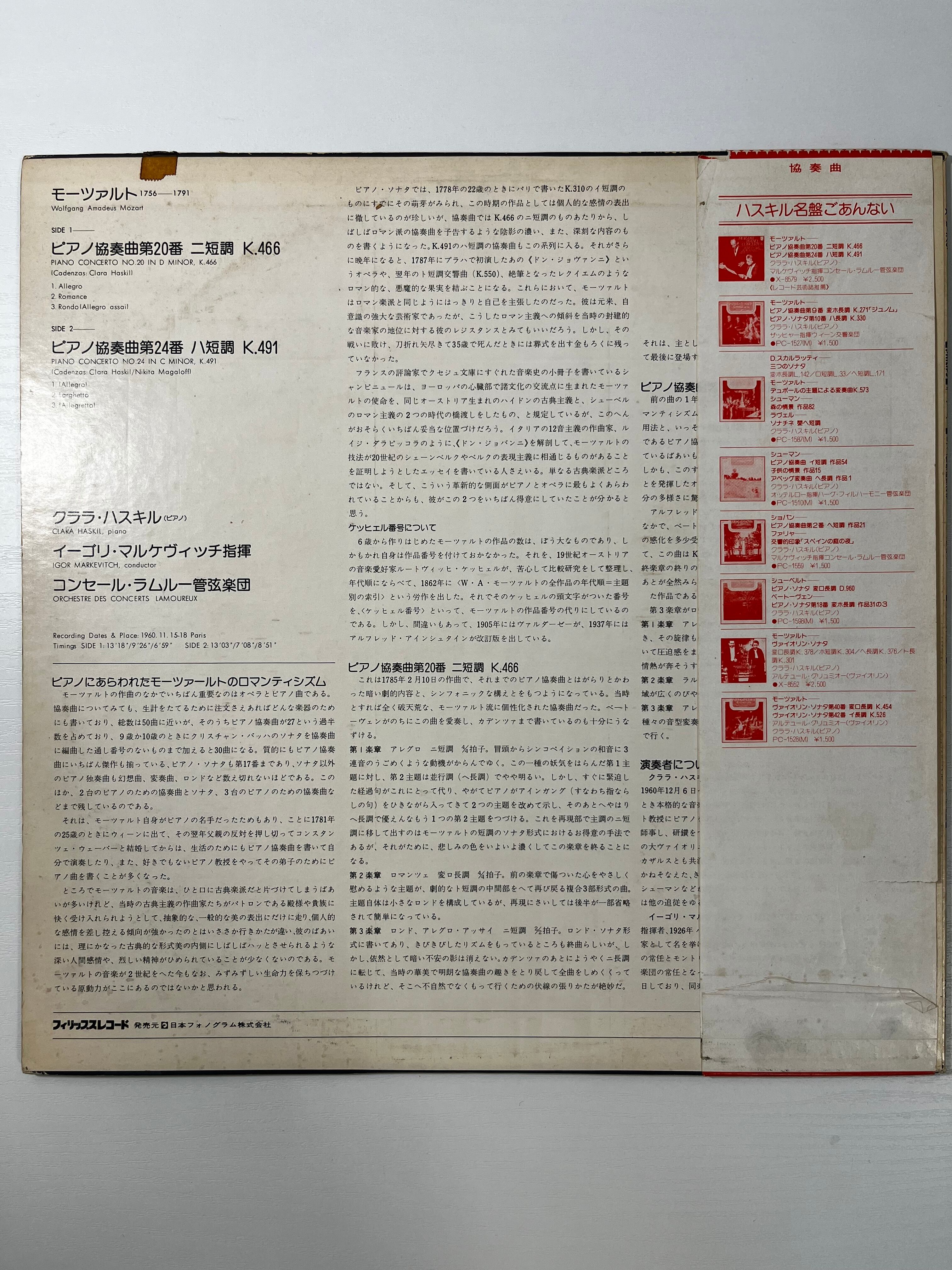 モーツァルト:ピアノ協奏曲第20番&第24番|クララ・ハスキル|PHILIPS 日本盤|Mozart Piano Concertos No.20 & 24
